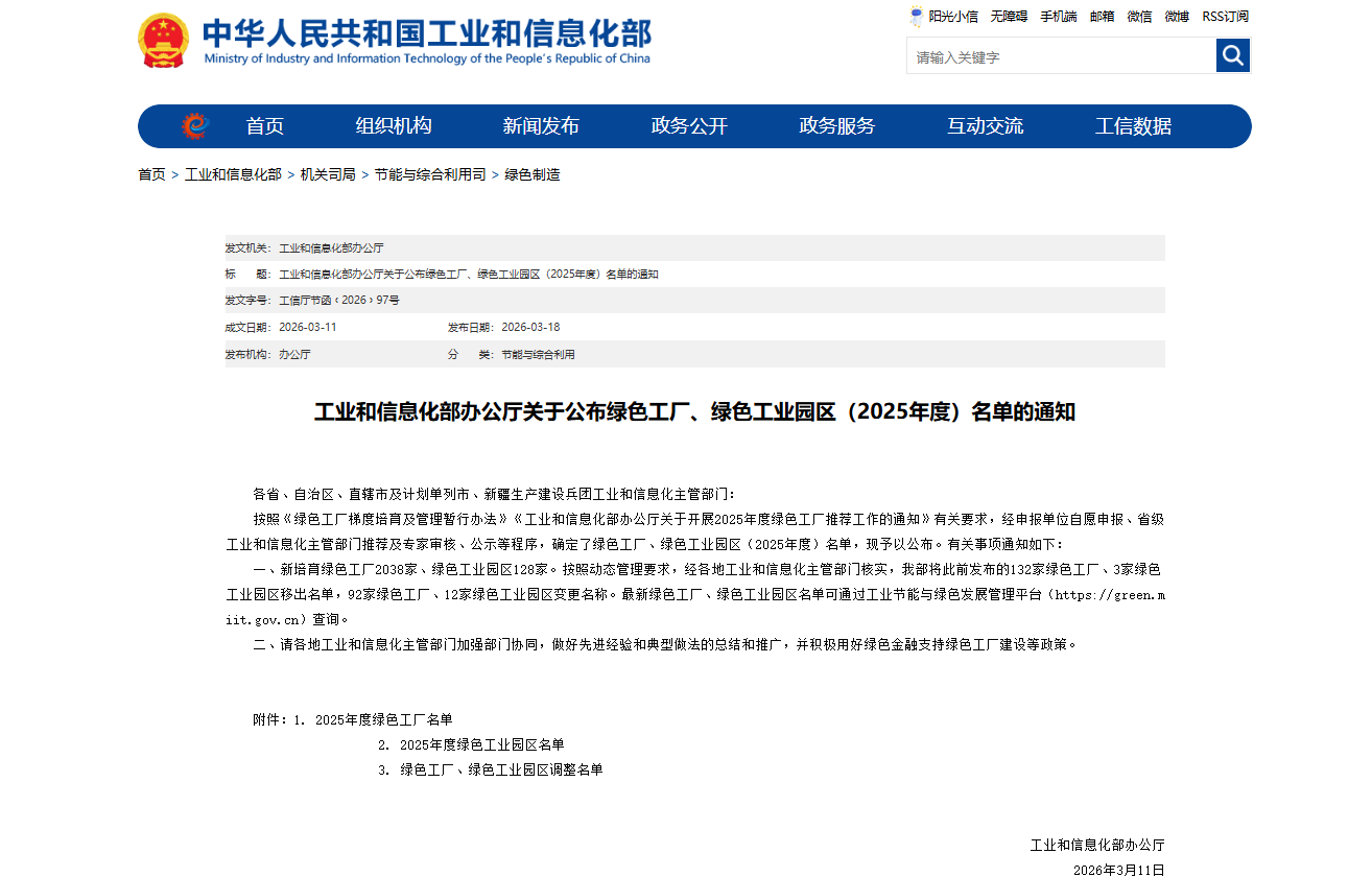 近日,国家工业和信息化部公布国家级绿色工厂与绿色工业园区(2025年)评定名单,安徽鲁控环保有限公司(以下简称“安徽鲁控”)凭借在绿色生产体系建设及资源循环利用领域的创新实践,成功获评“2025年国家级绿色工厂”。这标志着公司在环保工艺技术、节能减排及闭环管理等方面的综合实力已达到国内行业领先水平。